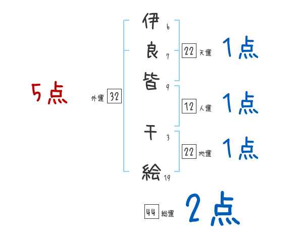 外運![]() | 伊良皆千絵さんの外運は32画の5つ星!柔軟性があり成功する。チャンスが多く金運が良い。 生活面を象徴する運勢です。外部から受ける影響力を表し、結婚運、家庭運や職場、環境への順応性を表します。 |