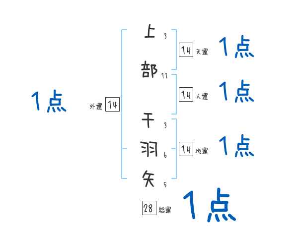 上部千羽矢さんの画数の鑑定結果