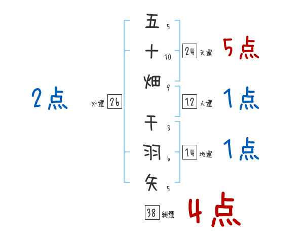 天運![]() | 五十畑千羽矢さんの天運は24画の5つ星!家庭運が良く順調な人生。金運にも恵まれる。 家系が持つ宿命的な運勢を表します。祖先から受け継いだ苗字ですので自分の力が及びません。家柄を象徴します。 |