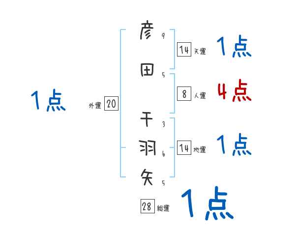 彦田千羽矢さんの画数の鑑定結果