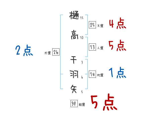 樋高千羽矢さんの画数の鑑定結果