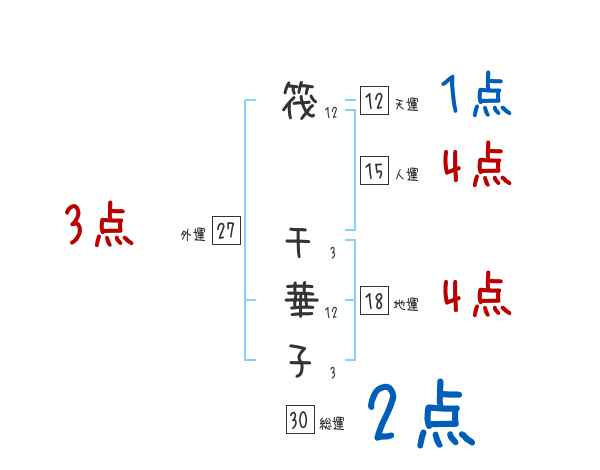 総運![]() | 筏千華子さんの総運は30画の2つ星!浮き沈みの激しさに注意しましょう。 あなたの人生を表す1番重要な運勢です。生涯を通じて影響する総合運となり、主に50歳以降の晩年期に影響を及ぼします。 |