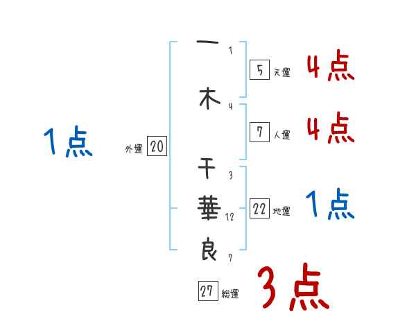 天運![]() | 一木千華良さんの天運は5画の4つ星!健康で安泰。協調性に優れ、財産に恵まれる。 家系が持つ宿命的な運勢を表します。祖先から受け継いだ苗字ですので自分の力が及びません。家柄を象徴します。 |