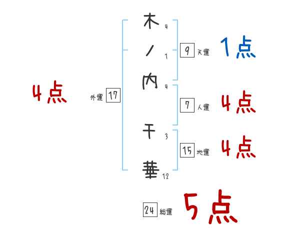 外運![]() | 木ノ内千華さんの外運は17画の4つ星!積極的な行動力。地位を気づき財産を手に入れる。純粋な心と直感力。 生活面を象徴する運勢です。外部から受ける影響力を表し、結婚運、家庭運や職場、環境への順応性を表します。 |