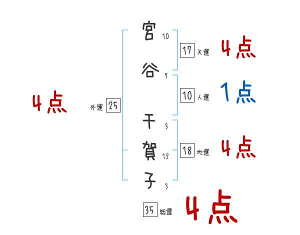 宮谷千賀子さんの画数の鑑定結果