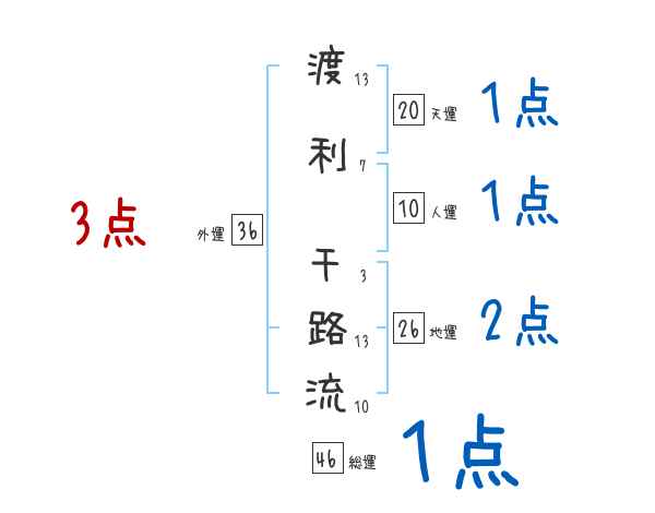 渡利千路流さんの画数の鑑定結果