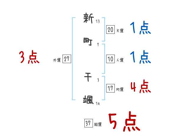 新町千颯さんの画数の鑑定結果