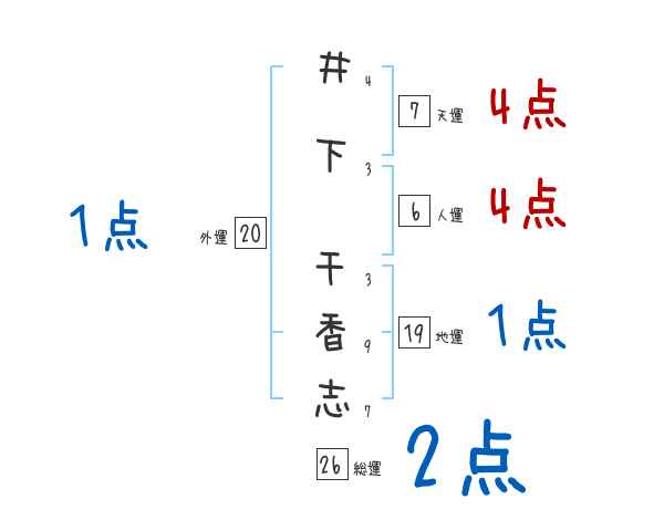 家系が持つ宿命的な運勢を表します。祖先から受け継いだ苗字ですので自分の力が及びません。家柄を象徴します。