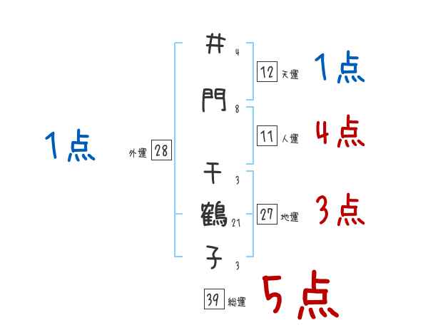 井門千鶴子さんの画数の鑑定結果