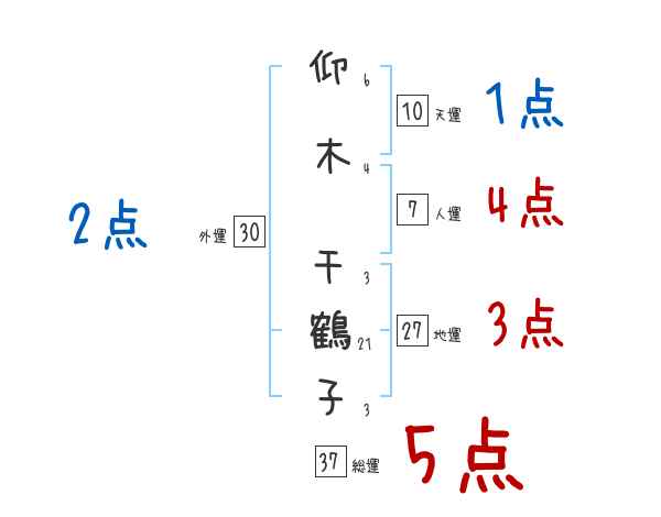 天運![]() | 仰木千鶴子さんの天運は10画の1つ星!不安を感じやすい傾向。ストレスを抱えないように注意しましょう。 家系が持つ宿命的な運勢を表します。祖先から受け継いだ苗字ですので自分の力が及びません。家柄を象徴します。 |
