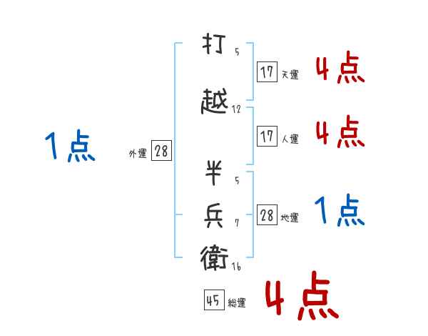 打越半兵衛さんの画数の鑑定結果