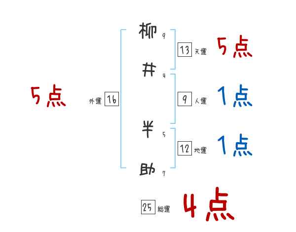 柳井半助さんの画数の鑑定結果