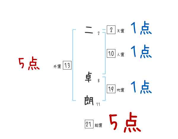 二卓朗さんの画数の鑑定結果