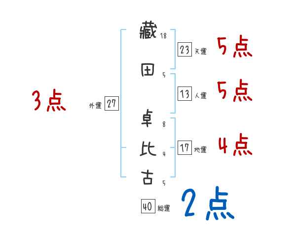 藏田卓比古さんの画数の鑑定結果