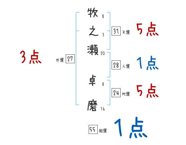 牧之瀬卓磨さんの画数の鑑定結果