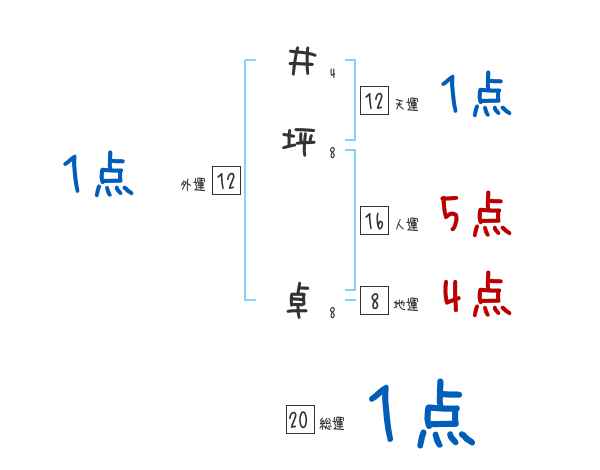 井坪卓さんの画数の鑑定結果