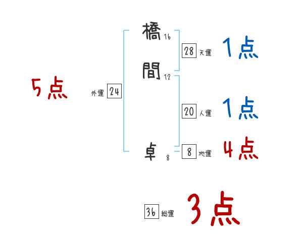 橋間卓さんの画数の鑑定結果