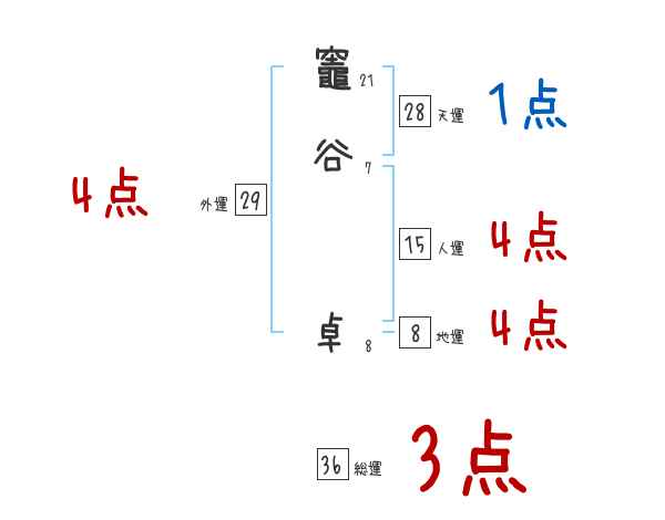 竈谷卓さんの画数の鑑定結果