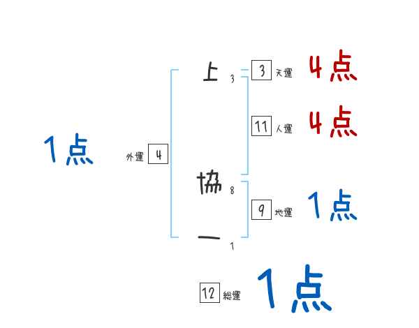 天運![]() | 上協一さんの天運は3画の4つ星!活動的で才能に恵まれ、多くの信頼を得る。希望に満ち成長する。 家系が持つ宿命的な運勢を表します。祖先から受け継いだ苗字ですので自分の力が及びません。家柄を象徴します。 |
