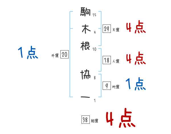 駒木根協一さんの画数の鑑定結果