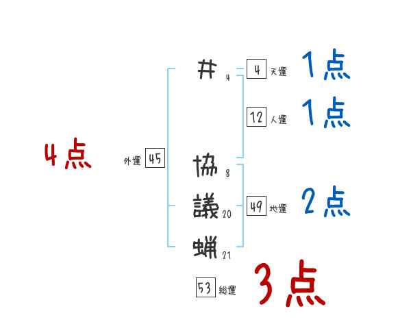 総運![]() | 井協議蝋さんの総運は53画の3つ星!やや見栄っ張りで虚栄心がある。散財に注意。 あなたの人生を表す1番重要な運勢です。生涯を通じて影響する総合運となり、主に50歳以降の晩年期に影響を及ぼします。 |