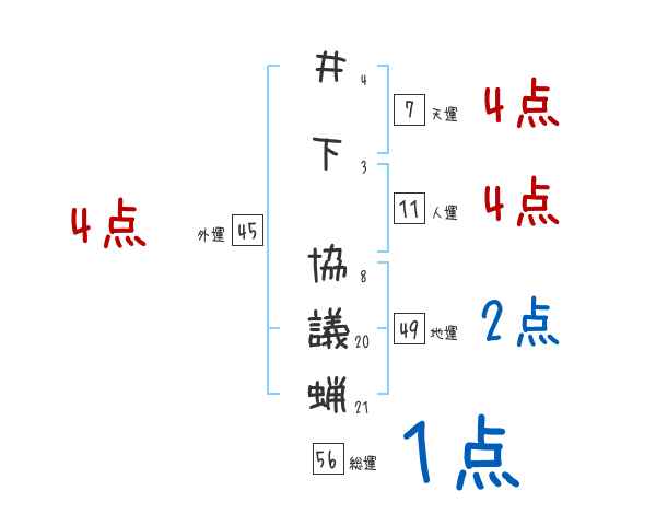 井下協議蝋さんの画数の鑑定結果