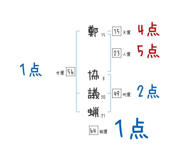 鄭協議蝋さんの画数の鑑定結果