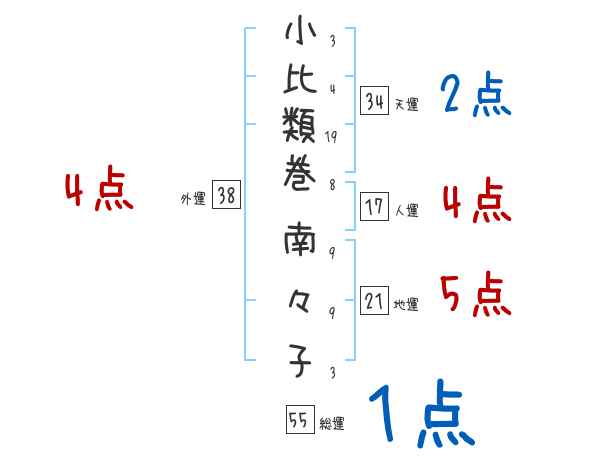 小比類巻南々子さんの画数の鑑定結果