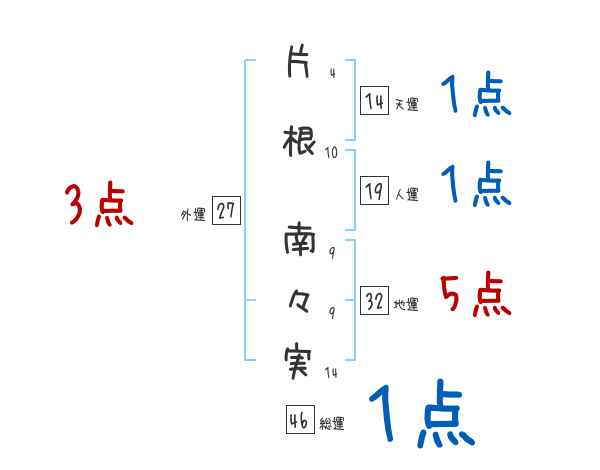 天運![]() | 片根南々実さんの天運は14画の1つ星!人に対して優しいがストレスを溜め込みがち。人間関係のトラブルを避けるよう気をつけましょう。 家系が持つ宿命的な運勢を表します。祖先から受け継いだ苗字ですので自分の力が及びません。家柄を象徴します。 |