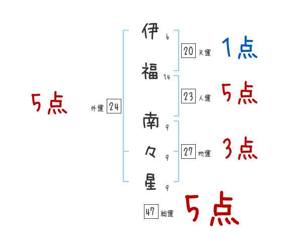 伊福南々星さんの画数の鑑定結果