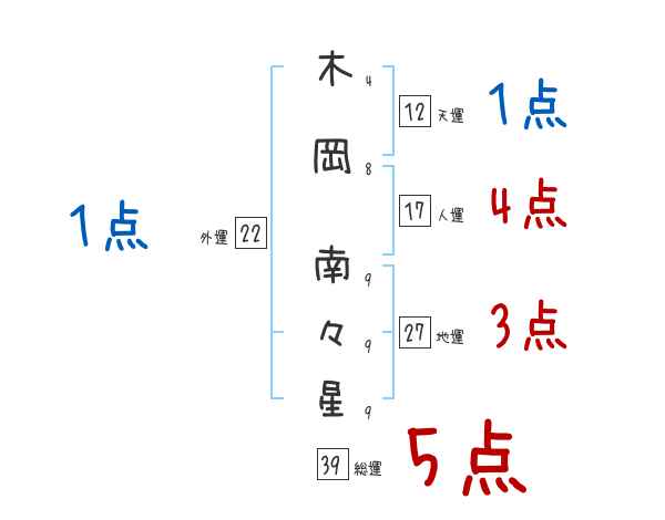 木岡南々星さんの外運は22画の1つ星