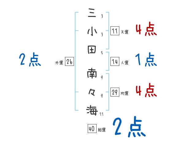 三小田南々海さんの画数の鑑定結果
