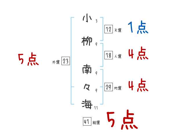 小栁南々海さんの画数の鑑定結果