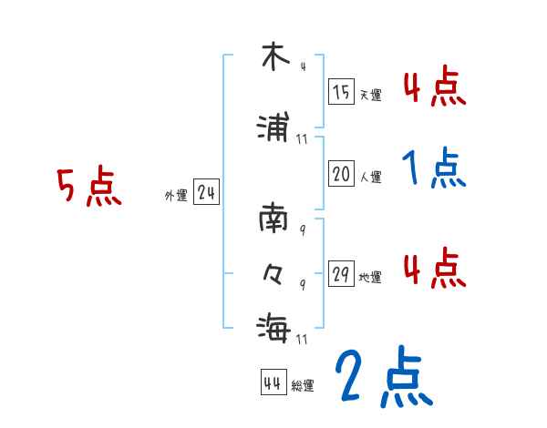 木浦南々海さんの画数の鑑定結果