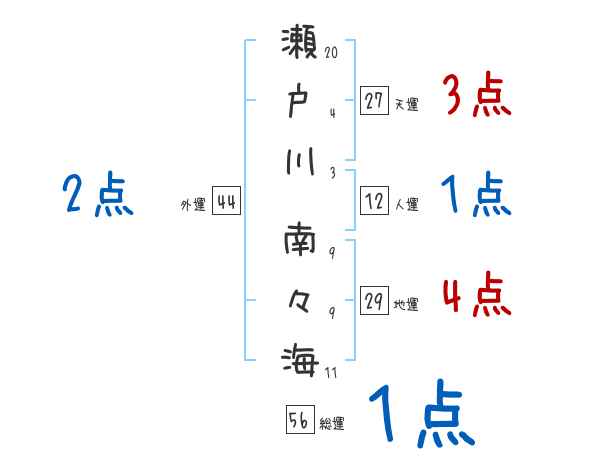 瀬戸川南々海さんの画数の鑑定結果