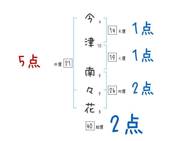 総運![]() | 今津南々花さんの総運は40画の2つ星!自信過剰で物事に固執するためトラブルに注意。 あなたの人生を表す1番重要な運勢です。生涯を通じて影響する総合運となり、主に50歳以降の晩年期に影響を及ぼします。 |