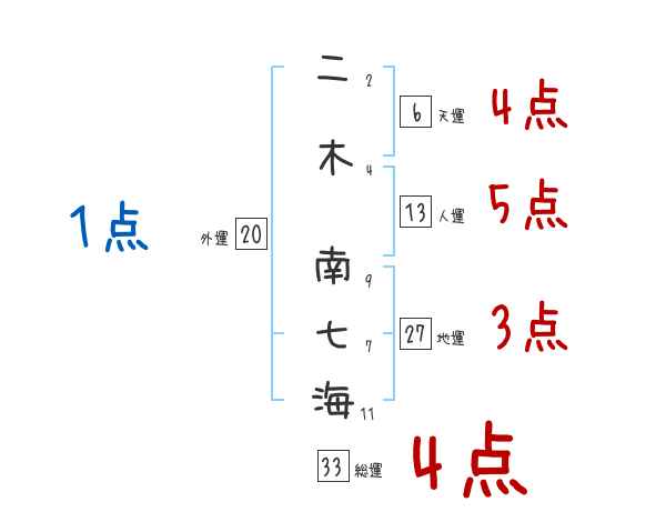 人運![]() | 二木南七海さんの人運は13画の5つ星!才能に恵まれ人気がある。名声を手に入れる。円満な人生。 性格や才能などを表す2番目に重要な運勢です。人間関係や協調性、社会的な成功に影響します。主に20歳から50歳ぐらいまでの中年期の運勢を表します。 |