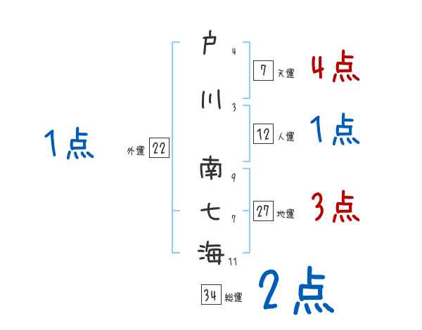 天運![]() | 戸川南七海さんの天運は7画の4つ星!強い意志や信念を持ち独立心が強い。自立する。 家系が持つ宿命的な運勢を表します。祖先から受け継いだ苗字ですので自分の力が及びません。家柄を象徴します。 |