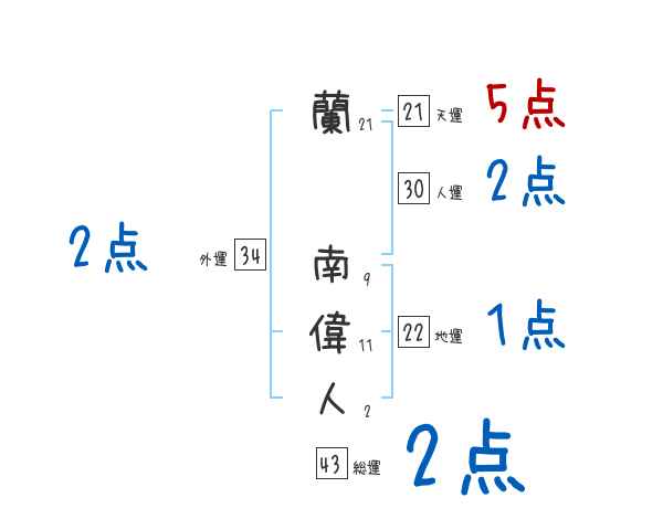 蘭南偉人さんの総運は43画の2つ星