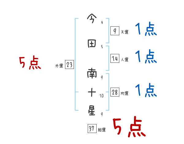 今田南十星さんの画数の鑑定結果