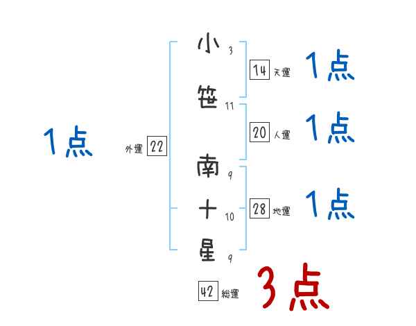 総運![]() | 小笹南十星さんの総運は42画の3つ星!病気に注意。多芸であるが消極的でおとなしい。 あなたの人生を表す1番重要な運勢です。生涯を通じて影響する総合運となり、主に50歳以降の晩年期に影響を及ぼします。 |
