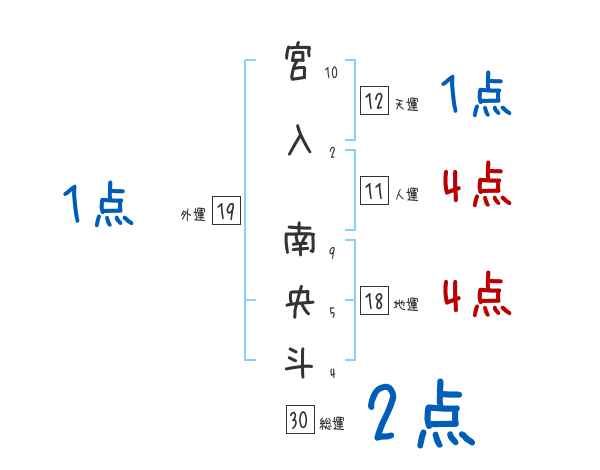 宮入南央斗さんの画数の鑑定結果