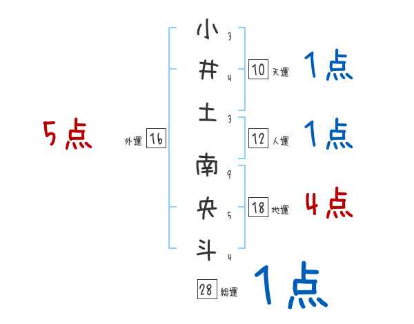 小井土南央斗さんの画数の鑑定結果
