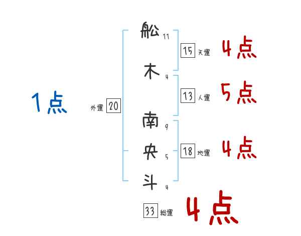 天運![]() | 舩木南央斗さんの天運は15画の4つ星!人徳があり出世する。順調に物事を進め円満な人生。 家系が持つ宿命的な運勢を表します。祖先から受け継いだ苗字ですので自分の力が及びません。家柄を象徴します。 |