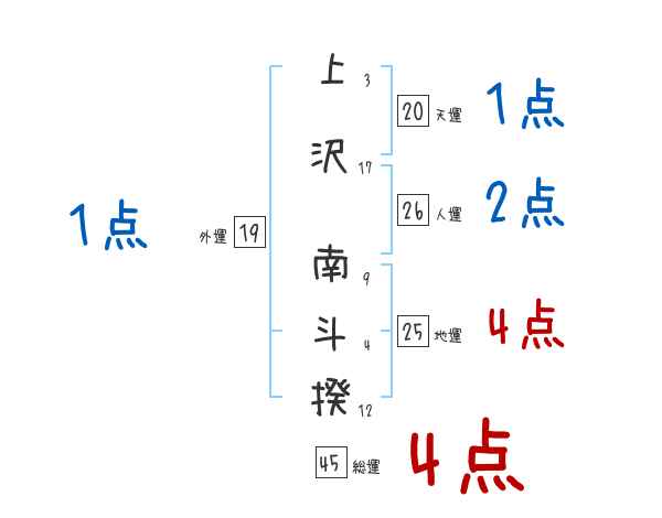 外運![]() | 上沢南斗揆さんの外運は19画の1つ星!優れた才能を持ちますが、協調性が足りないことも。周りの人と協力する事を意識しましょう。 生活面を象徴する運勢です。外部から受ける影響力を表し、結婚運、家庭運や職場、環境への順応性を表します。 |