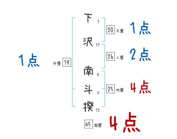 下沢南斗揆さんの画数の鑑定結果