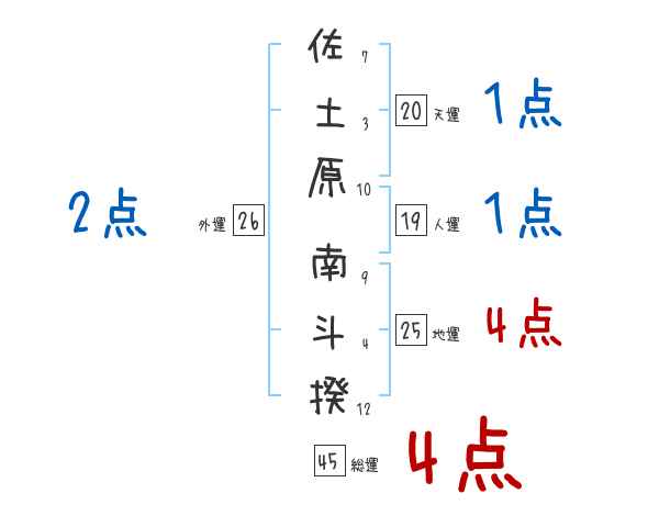 外運![]() | 佐土原南斗揆さんの外運は26画の2つ星!波瀾万丈かも。信頼できる人を大事にしましょう。 生活面を象徴する運勢です。外部から受ける影響力を表し、結婚運、家庭運や職場、環境への順応性を表します。 |