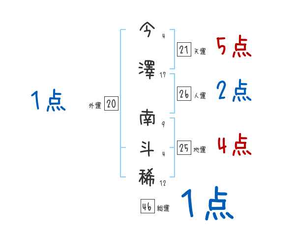 今澤南斗稀さんの画数の鑑定結果