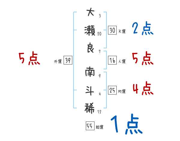 大瀬良南斗稀さんの画数の鑑定結果