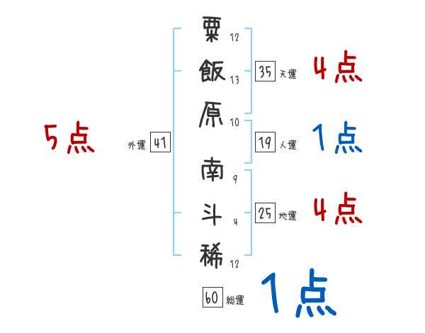 粟飯原南斗稀さんの画数の鑑定結果